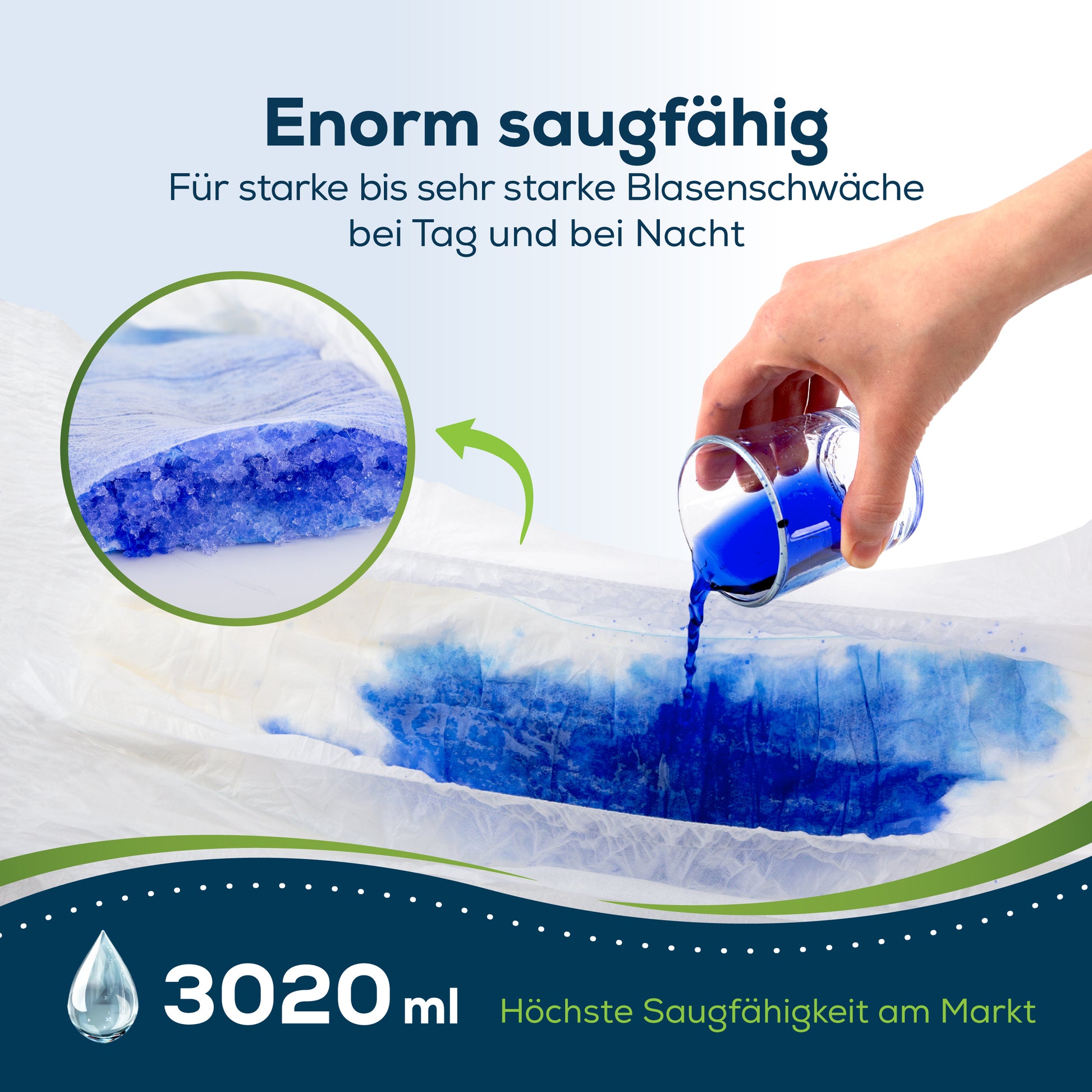 Die Pants bieten eine überlegene Saugfähigkeit und können ein Volumen von bis zu 3.220 ml sicher aufnehmen.