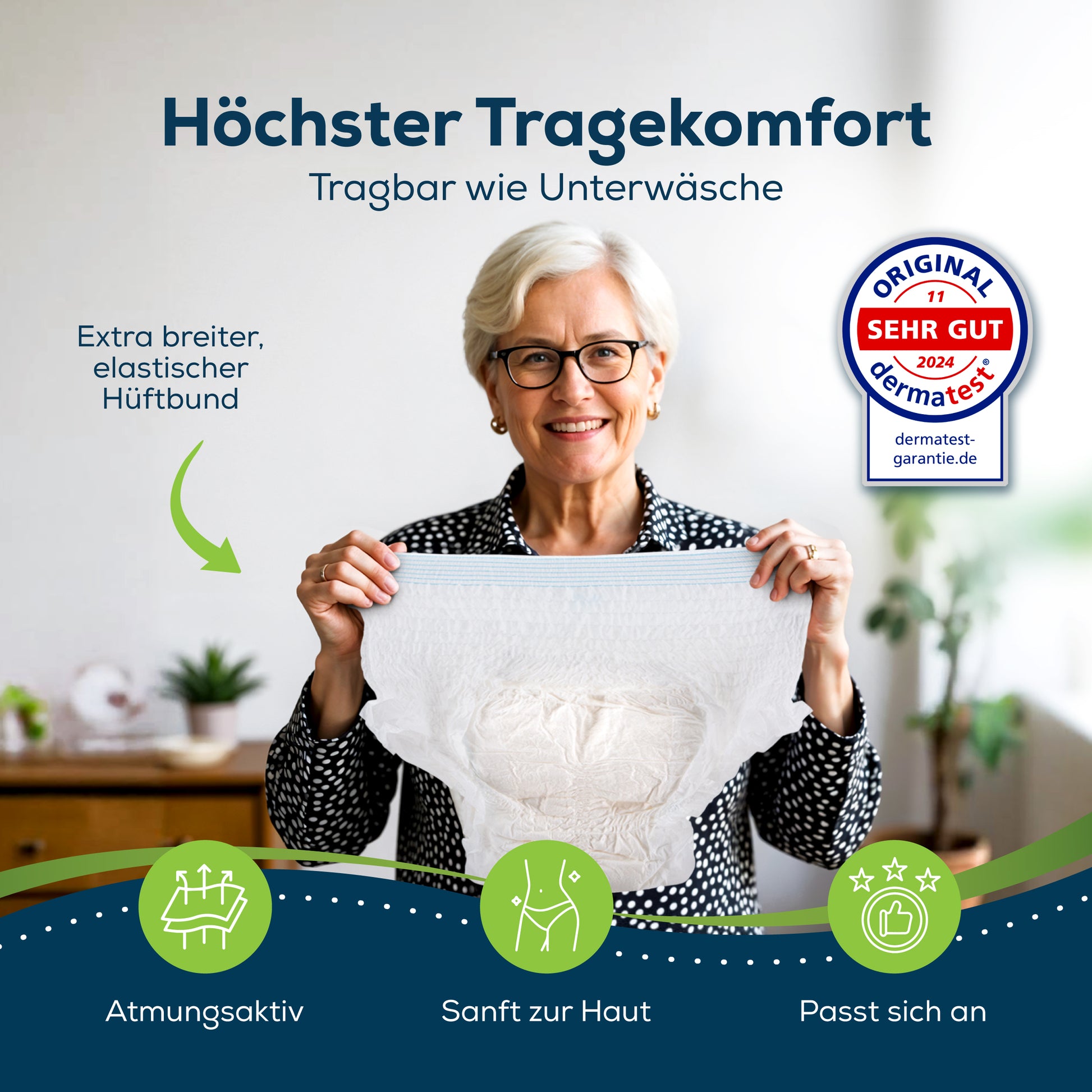 Speziell entwickelt für hohe Ansprüche, bietet diese Pant auch bei schwerer Inkontinenz absoluten Schutz und ein trockenes Gefühl.